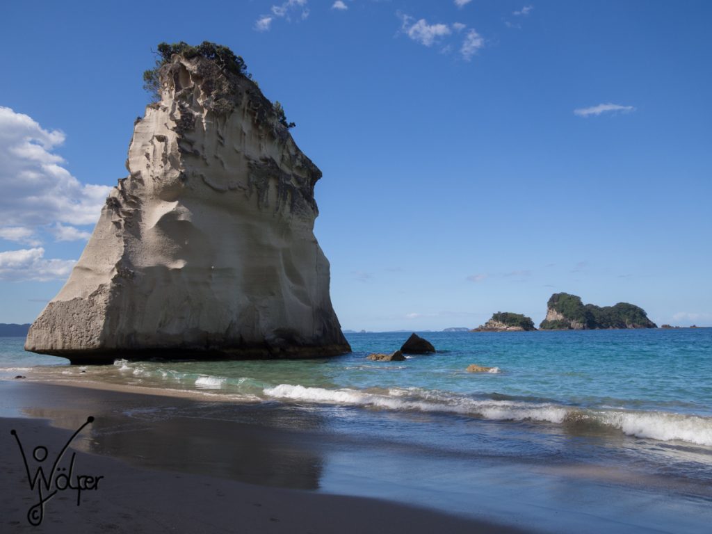 Ich bin gemütlich in den Tag gestartet und hab mir früh morgens den Wasserfall angeschaut, der vom Campingplatz in etwa 30 min zu erreichen ist. Mein erster Kontakt mit dem dschungelartigen Wald und ein schöner Ausblick auf den Wasserfall. Im Anschluss ging es weiter in Richtung Whangamata, also effektiv einfach aus dem Hinterland an die Küste. Hier gab es dann bei schönstem Ausblick einen leckeren Kaffee (Blackies Cafe). Zum Ausblick gehörte auch die „Donut-Insel“, die hatte ich noch als Empfehlung für eine Kajak Tour bekommen, hab es leider aber zeitlich nicht geschafft. Die Bilder in diesem Internet sehen aber toll aus.