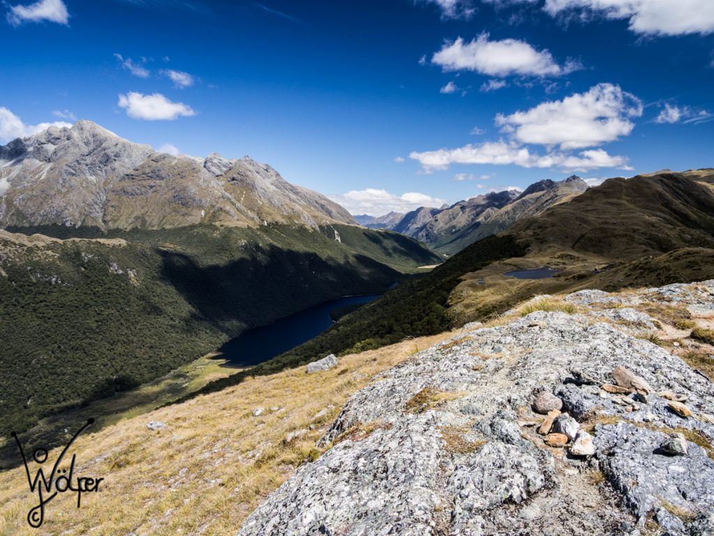 Heute Morgen hat die Sonne sich wieder blicken lassen, nach einer regnerischen Nacht. Erster Stopp ist Te Anau, hier erstmal meine Auto mit Sprit, mein Kühlschrank mit Essen und mich mit Kaffee auffüllen. Ziel des Tages war dann  Gunns Camp. Au dem Weg dorthin gab es all paar Kilometer immer was wieder Stopps. Mirror Lake oder Eglinton Flats um nur ein paar zu nennen. Besonders beeindruckend war The Divide. An dieser Stelle gibt es einen Wanderweg, was auch ein paar Stunden dauert, aber total lohnenswert ist. Ein fantastischer Ausblick in alle Richtungen. Nur beim Parkplatz sollte man nicht allen Schildern trauen, ich wäre fast nicht mehr die Schotterrampe des Ausweichparkplatzes hochgekommen.